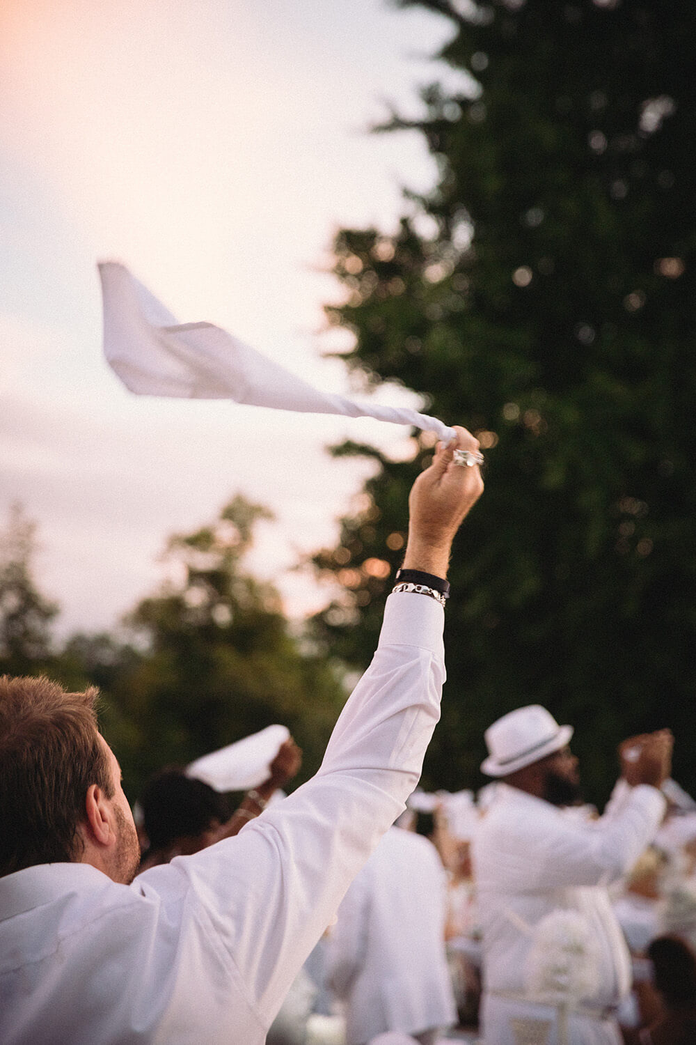 Once the scene is set, guests wave their white cloth napkins in the air, in unison, to signal that Le Diner is about to commence.